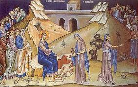 Εκεί ήταν η πηγή του Ιακώβ, το πηγάδι που εκείνος είχε ανοίξει. Κουρασμένος ο Κύριος από την οδοιπορία κάθισε μόνος του δίπλα από το πηγάδι και κάτω αφελώς, γιατί οι μαθητές του πήγαν να αγοράσουν τροφές. Έρχεται εκεί μια γυναίκα από τη Σαμάρεια να πάρει νερό και ο Κύριος διψώντας ως άνθρωπος, της ζήτησε νερό.