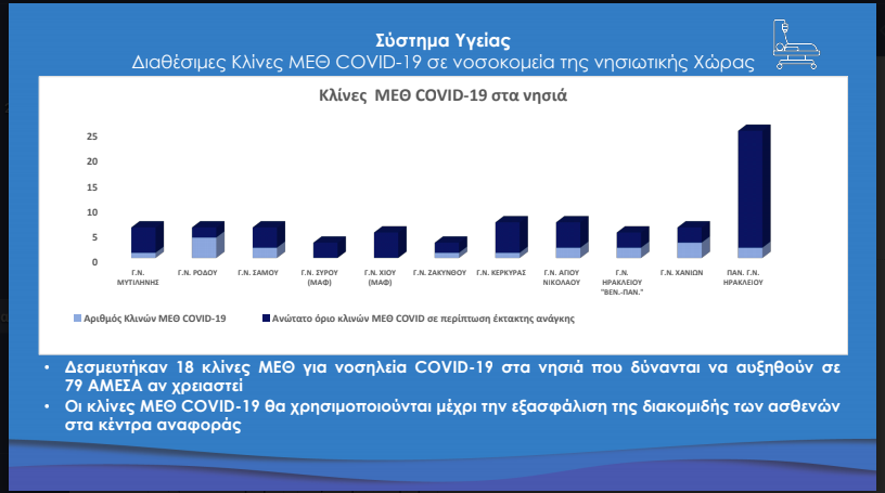 Για τις Μονάδες Εντατικής Θεραπείας (ΜΕΘ) και Μονάδες Αυξημένης Φροντίδας (ΜΑΦ), οι οποίες είναι σήμερα 18, υπάρχει δυνατότητα επέκτασης σε 79.
