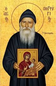 Πνευματέμφορος ὅλος καὶ ἀπαθέστατος, διακρίσεως φάρος φωτοειδέστατος, ἱερατεύων τῷ Χριστῷ, ὡς ἰσάγγελος ὤφθης. Προφήτης θαυμαστός, τὰ ἐγγὺς καὶ τὰ μακράν, προβλέπεις ὅσιε Πάτερ, Πορφύριε θεοφόρε, Ἁγίου Ὄρους τὸ ἀγαλλίαμα.